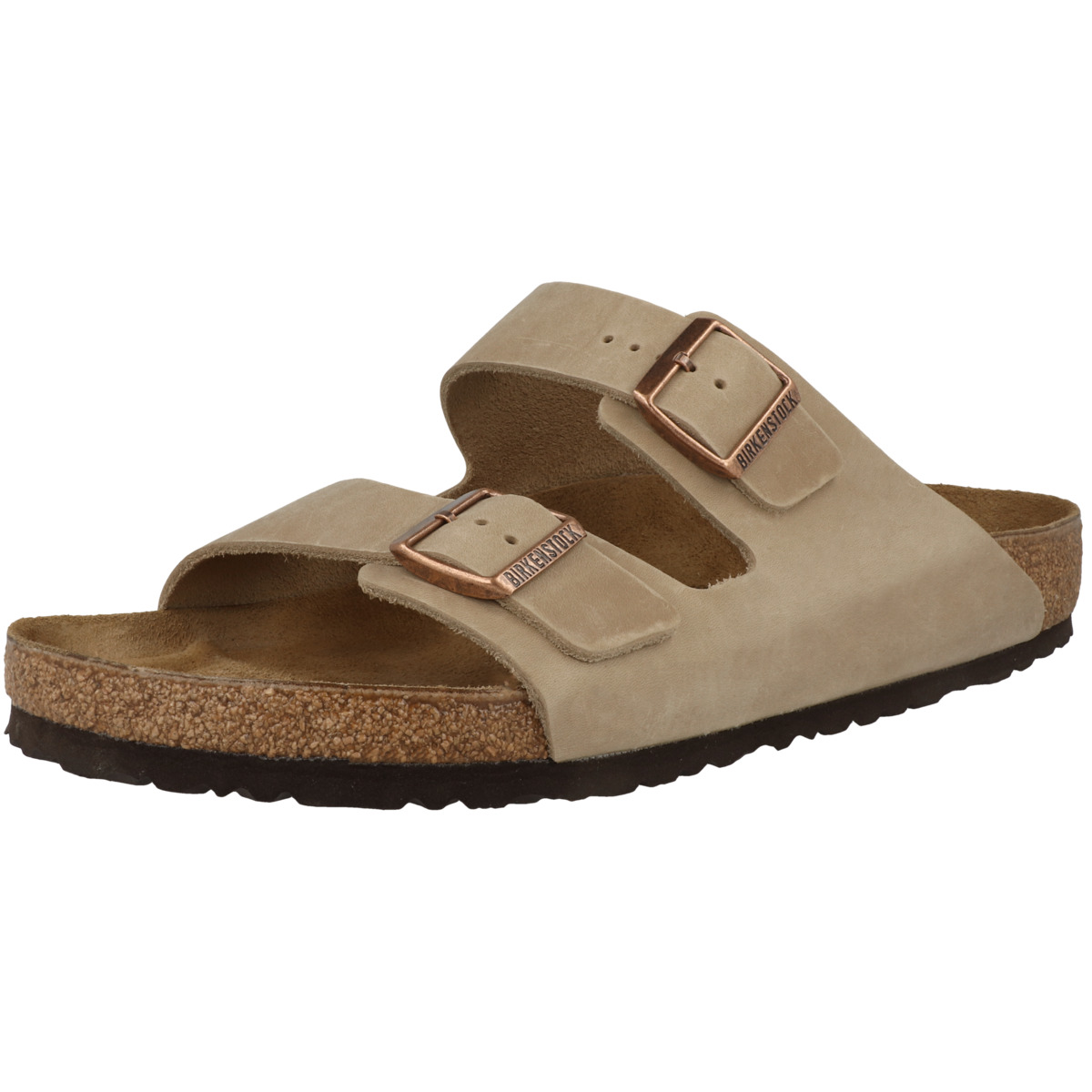 Die Pantolette Arizona ist mit geöltem Nubukleder als Obermaterial ausgestattet.Es verfügt über eine gleichmäßige glatte und robuste Oberfläche. Die Laufsohle aus EVA-Material verspricht eine angenehme Schrittdämpfung und ist resistent gegen beständige Hitze, Öle oder Lösungsmittel. Für weiteren Tragekomfort sorgt das Birkenstock Fußbett aus Kork. Die Sandalen sind beliebt für Beruf und Freizeit.