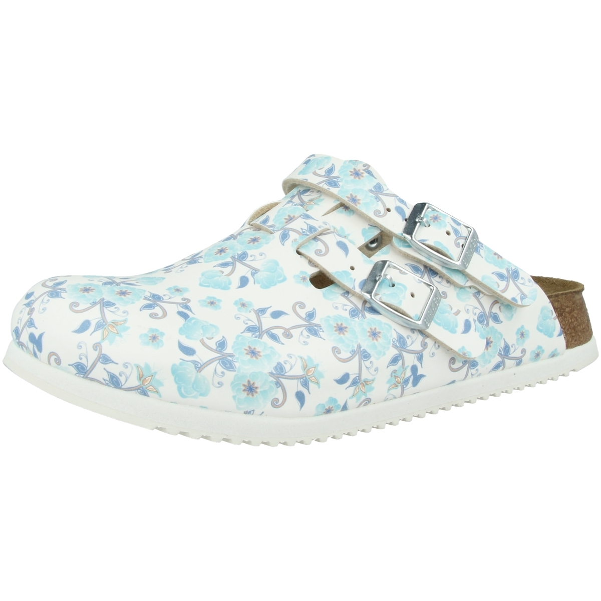 Ein Schuh mit viel Komfort für Beruf und Freizeit. Durch den umklappbaren Riemen vom Spann zur Ferse kann der Schuh nicht verloren gehen. Die Superlaufsohle besteht aus zwei Komponenten: einer stark trittdämpfenden EVA-Zwischensohle und einer nach EN ISO 20347:2012 geprüften, öl-und fettbeständigen sowie besonders rutschhemmenden Laufsohle. Somit eignet sich der bequeme Clog für deinen Arbeitsalltag in der Praxis, Krankenhaus, Küche, Gastronomie und in der Freizeit. Infos zum Fußbett: Herzstück aller Modelle ist das Original Birkenstock-Fußbett, das der natürlichen Trittspur eines Fußes im Sand nachempfunden ist. Dank dem wirkt das Gehen in Birkenstock -Schuhen wie Barfußlaufen. Mit seinen anatomischen Ausformungen unterstützt es Ihre Füße optimal bei der natürlichen Schrittabwicklung. Füße, Gelenke und Rücken werden geschont. Zugleich werden der Fuß und die Beinmuskulatur trainiert. Das fördert Gesundheit und Wohlbefinden.