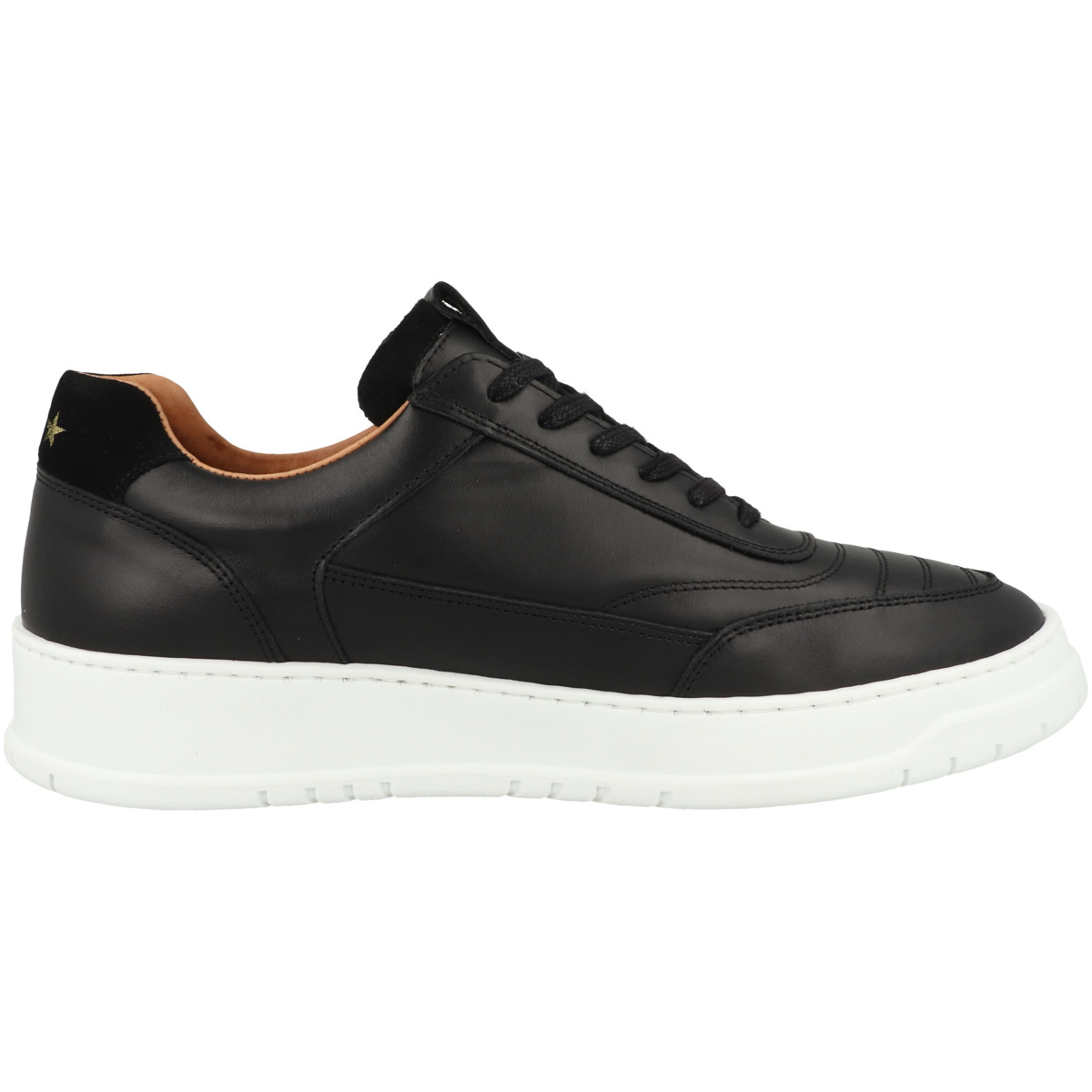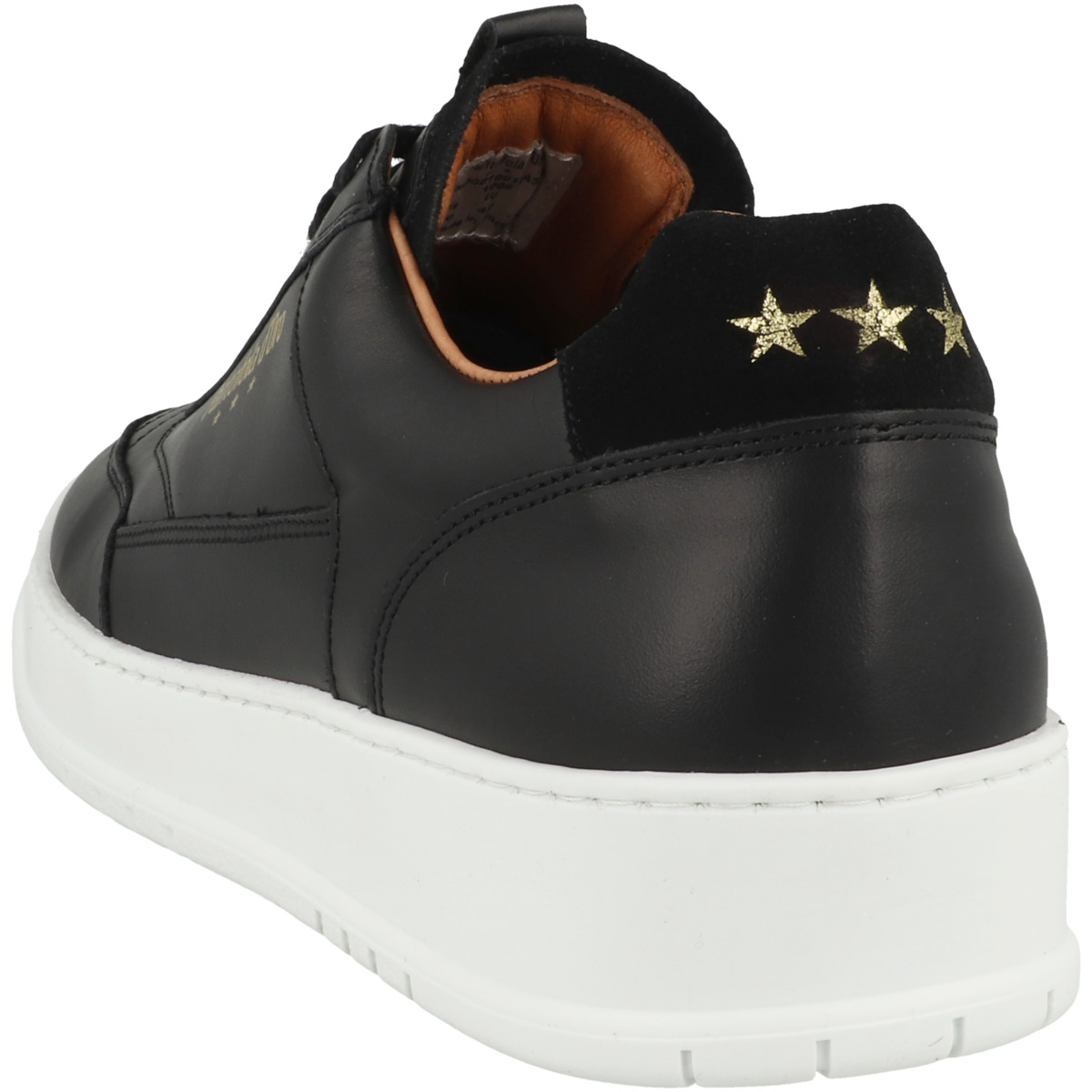 Der Schaft ist zusätzlich gepolstert, was für eine angenehme Passform sorgt. Ein Schriftzug an der Seite sowie die Zuglasche an der Zunge setzen dezente Akzente, während die drei Sterne auf der Ferse als Markenzeichen des Schuhs hervorstechen. Der Verschluss erfolgt klassisch durch Schnürung, die flache Sohle aus Synthetik mit Profil sorgt für einen sicheren Halt auf verschiedenen Untergründen.